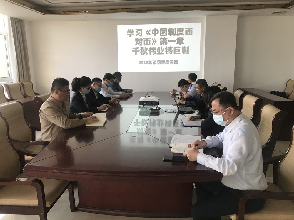 2020年10月12日下上午10時,招金有色黨支部第四季度黨課在招金大廈2105會議室開展,本次黨課內(nèi)容為:學習《中國制度面對面》第一章—千秋偉業(yè)鑄巨制,本次黨課由黨支部書記李廣輝同志帶領大家一同學習,廣大黨員同志參會。