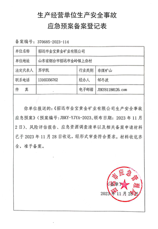 招遠(yuǎn)市金寶黃金礦業(yè)有限公司 生產(chǎn)安全事故應(yīng)急預(yù)案公示